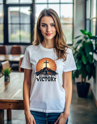 👕 “His Cross, My Victory” – A reminder of the finished work that settled it all.